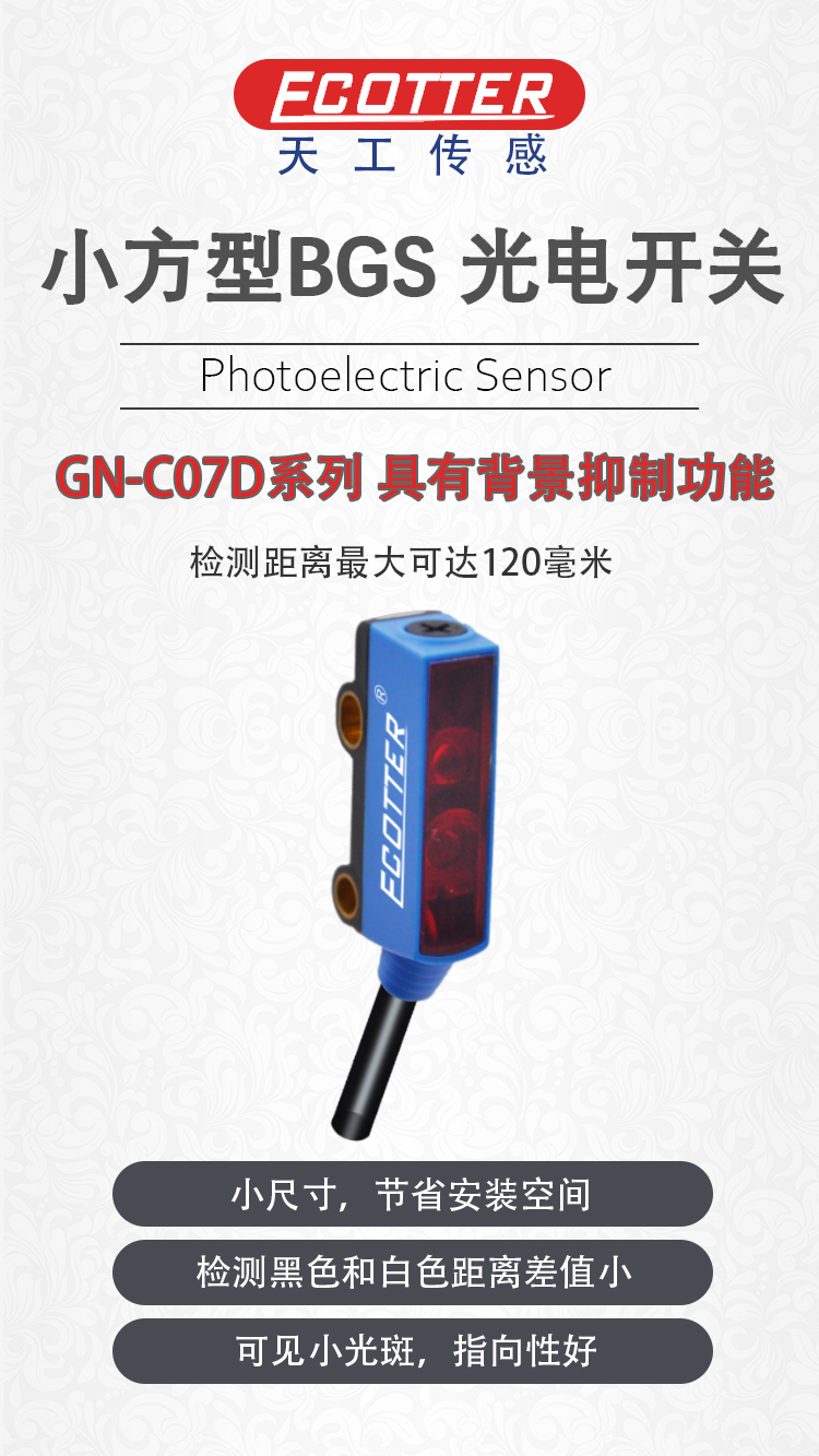 ECOTTER 小方型背景抑制光電開關(guān)GN-C07