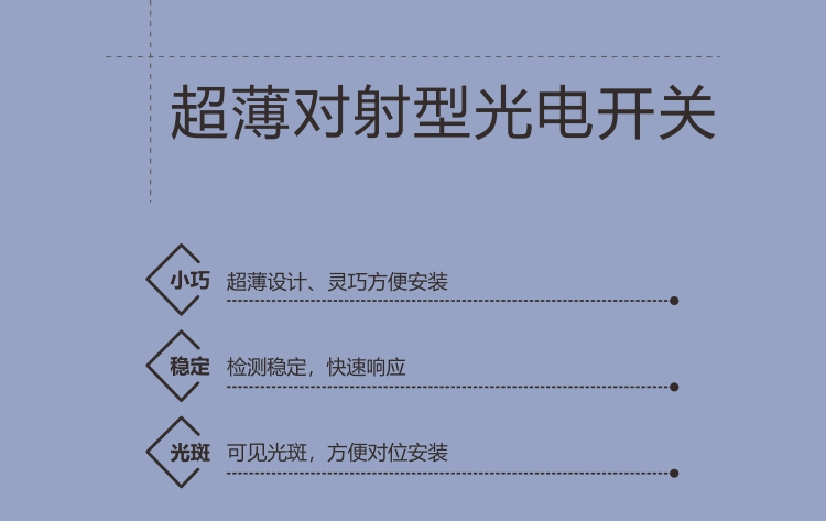這款光電開關尺寸小巧,機身厚度比較薄為5毫米左右只需些許空間,即可安裝。配備雙色指示燈,可視化了解產(chǎn)品工作狀態(tài)。