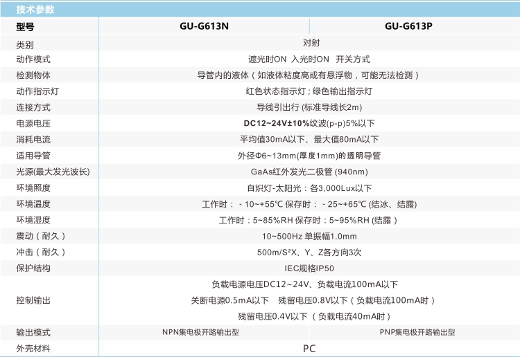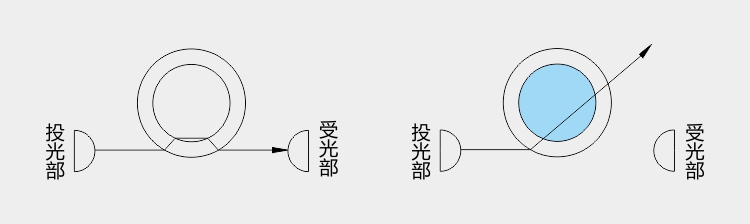 ②如導(dǎo)管內(nèi)有液體,投光部發(fā)出的光將穿透液體,不進(jìn)入受光元件。(遮光狀態(tài))