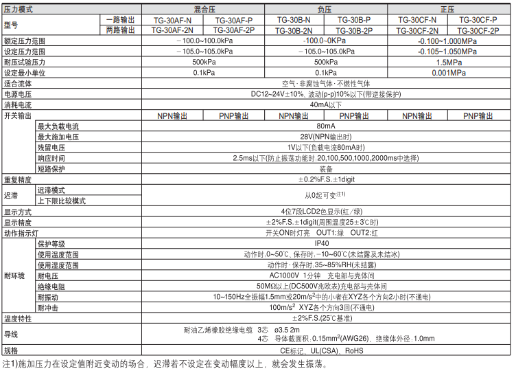 這個(gè)系列的壓力表可分為混合壓TG-30AF、正壓表TG-30CF、負(fù)壓表TG-30BF三個(gè)類(lèi)型。